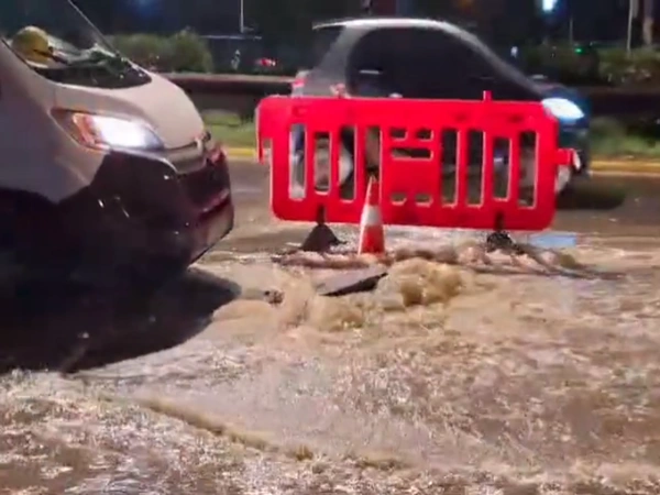Μάλιστα, ένα μικρό φορτηγάκι της Εταιρίας Ύδρευσης και Αποχέτευσης βρίσκεται στο σημείο, χωρίς να μπορεί να κάνει πολλά, όπως όλα δείχνουν.