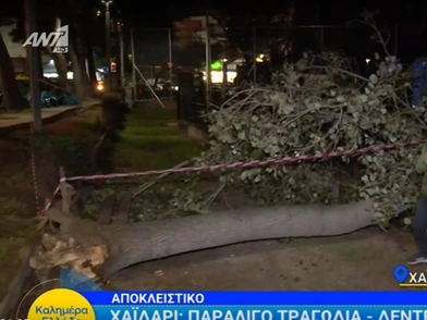 Ένα σοβαρό περιστατικό σημειώθηκε στην οδό Πλαταιών στο Χαϊδάρι, όταν ένα μεγάλο δέντρο κατέρρευσε μέσα σε παιδική χαρά, τη στιγμή μάλιστα που στο σημείο βρίσκονταν μια γιαγιά με το εγγονάκι της.