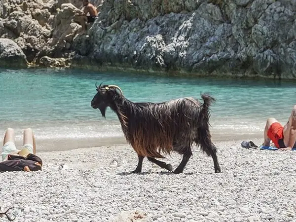 Εκτός από την φυσική της ομορφιά, η παραλία είναι επίσης γνωστή για τους ασυνήθιστους επισκέπτες της: τις κατσίκες, σύμφωνα με το neakriti.gr.