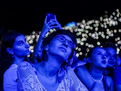 Πλήθος κόσμου βρίσκεται στο Καλλιμάρμαρο για τη συναυλία που είναι αφιερωμένη στα 57 θύματα του σιδηροδρομικού δυστυχήματος των Τεμπών.
