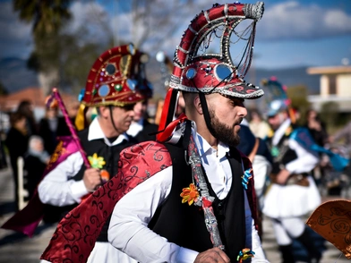 Οι άνθρωποι φοράνε τομάρια ζώων όπως λύκων και τράγων ενώ άλλοι ντύνονται με στολές ανθρώπων οπλισμένων με σπαθιά και έχουν την μορφή γερασμένων προσώπων.