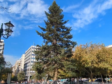 Χθες περί τα ξημερώματα στήθηκε μετά από πολύωρες εργασίες το φετινό χριστουγεννιάτικο δέντρο στην πλατεία Συντάγματος, με τα συνεργεία του δήμου να κάνουν ένα 6ωρο για να «στήσουν» το πανύψηλο έλατο.