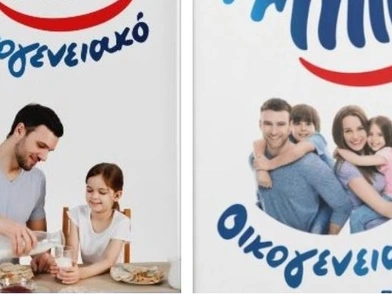 Αναπαράγουν δε και μια φωτογραφία με το συγκεκριμένο είδος γάλακτος όπου στη μία εμφανίζεται ένας πατέρας, μία μητέρα και τα δύο παιδιά τους ως «προηγούμενη συσκευασία», ενώ ως «νέα συσκευασία» παρουσιάζεται η συσκευασία με τη φωτογραφία ενός πατέρα με την κόρη του.