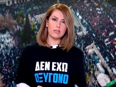 Στη διάρκεια της κάλυψης των μεγαλειωδών συγκεντρώσεων της Παρασκευής (28/2), η παρουσιάστρια του «Εξελίξεις Τώρα» πήρε το μπλουζάκι που της έδωσε συγγενής των θυμάτων, και είπε: «Τώρα αυτό που θα κάνω δεν είναι ιδιαίτερα δημοσιογραφικό».