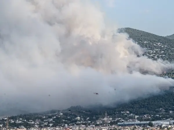 Μόλις λίγα λεπτά της ώρας χρειάστηκε η φωτιά στην Πάρνηθα για να περάσει από τον λόφο στην περιοχή του στρατοπέδου «Καποτά» και της Αγίας Παρασκευής Μενιδίου στον απέναντι λόφο περνώντας πάνω από τη χαράδρα.