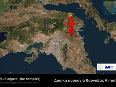 Εκτός ελέγχου είναι η φωτιά στην Ανατολική Αττική με το μέτωπο να είναι ορατό από το διάστημα.