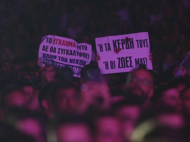 Όλη η Ελλάδα, μέσα κι έξω απ' αυτό, είναι συντονισμένη στο Καλλιμάρμαρο Παναθηναϊκό Στάδιο όπου βρίσκεται σε εξέλιξη η συναυλία για τα 57 θύματα του σιδηροδρομικού δυστυχήματος στα Τέμπη.