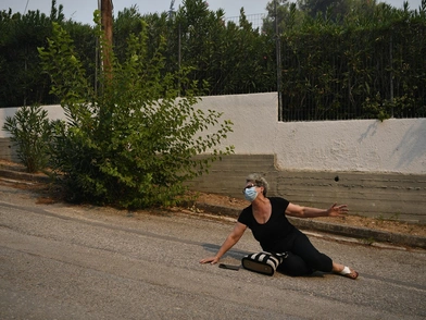 Η φωτογραφία του πρακτορείου Associated Press είναι η γλαφυρή απεικόνιση της απόγνωσης που κυρίευσε τους πολίτες ενώ οι φλόγες έκαιγαν την Αττική.