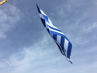 Έπαρση της μεγαλύτερης ελληνικής σημαίας, επιφάνειας 618 τ.μ., πραγματοποιήθηκε σήμερα το πρωί (14/5) πλησίον του Αρχαιολογικού Μουσείου Αλεξανδρούπολης, στο πλαίσιο των εορταστικών εκδηλώσεων «Ελευθερία 2024».