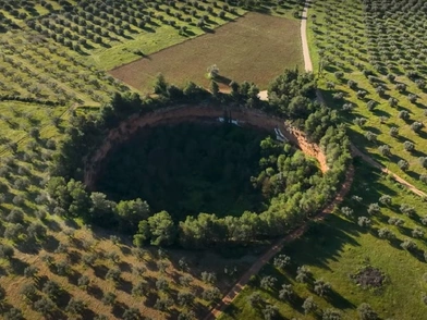 Ένα παραμυθένιο σκηνικό συναντά κανείς στην εξοχή της Αργολίδας, όπου μία συστοιχία δέντρων κρύβει το μοναδικό εκκλησάκι του Αγίου Γεωργίου, «χωμένο» σε έναν μυστήριο κρατήρα.