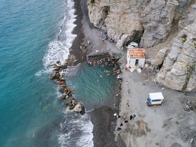 Κρύο νερό εισβάλει από τη θάλασσα ενώ από το υπέδαφος αναβλύζει καυτό ιαματικό νερό που η θερμοκρασία του αγγίζει τους 40 βαθμούς Κελσίου.