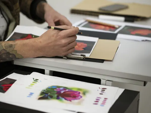 Αυτό ξεκινάμε να το δουλεύουμε από τον πρώτο μήνα στην σχολή και απο εκεί και έπειτα, είναι στην ευχέρεια του καθενός σε τι επίπεδο θέλει να φτάσει εικαστικά, σχεδιαστικά και στο τατουάζ», εξηγεί ο Πάνος.