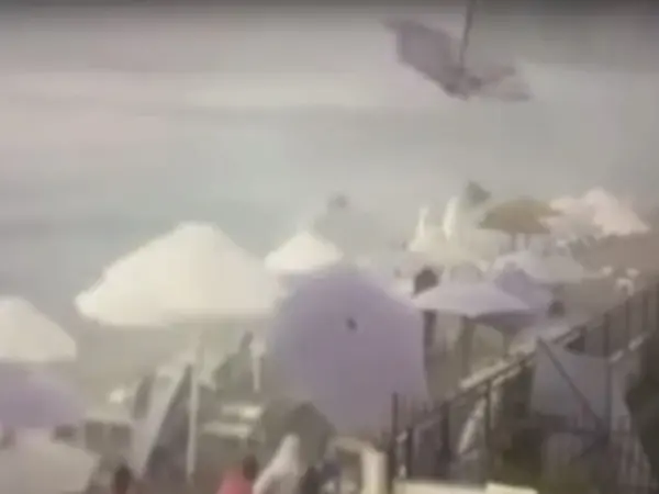 Το πέρασμα του ξαφνικού μπουρινιού ήταν σαρωτικό. Για μερικά λεπτά, λόγω του ισχυρού αέρα δημιουργήθηκε ανεμοστρόβιλος, με αποτέλεσμα να σηκωθούν ομπρέλες από την παραλία και να δημιουργηθεί αναστάτωση.