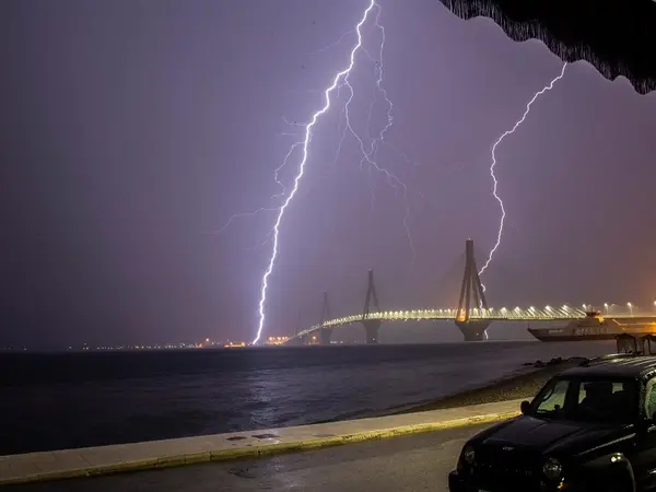 Συγκεκριμένα, καταγράφηκαν κεραυνοί να πέφτουν στην περιοχή που βρίσκεται κοντά στη γέφυρα Ρίο - Αντίρριο, τόσο στη θάλασσα όσο και στη στεριά.