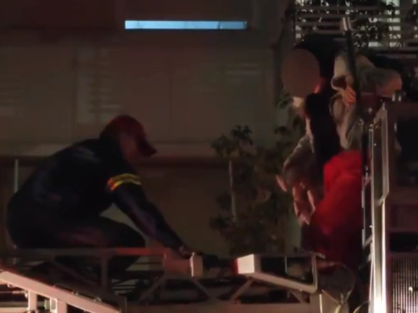 Την ώρα που πυροσβέστες έδιναν μάχη για να περιορίσουν τις φλόγες, άλλοι συνάδελφοί τους -όπως φαίνεται στο βίντεο του Orange Press Agency- ανέβηκαν με την επεκτεινόμενη κλίμακα στους ορόφους και απεγκλώβισαν δύο ηλικιωμένα άτομα.