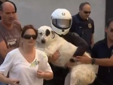 Η τηλεοπτική κάμερα του Alpha κατέγραψε τη στιγμή της διάσωσης ενός φοβισμένου σκύλου από δύο αστυνομικούς κι έναν κάτοικο της περιοχής.