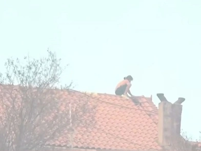 Η φωτιά έχει ξεσπάσει, σύμφωνα με τις ίδιες πληροφορίες, στο ξύλο κάτω από το κεραμίδι και προσπαθεί μαζί με τους Πυροσβέστες να σβήσουν το μέτωπο που σιγοκαίει κάτω από το σπίτι του.