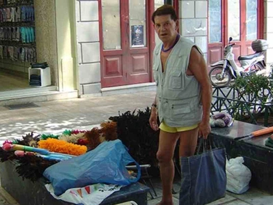 Η εμφάνισή του με τα κοντά σορτσάκια, τις κρέμες σε όλο το σώμα, τις σαγιονάρες, τις see through μπλούζες και τα κολιέ στο λαιμό παρέπεμπε σε ομοφυλόφιλο, αλλά για όσους τον γνωρίζουν καλά αυτό δεν ήταν παρά ένα τέχνασμα για να τραβάει τα βλέμματα, να συγκεντρώνει δίπλα του πολλούς ανθρώπους και έτσι να πουλάει πιο εύκολα τα φτερά του.