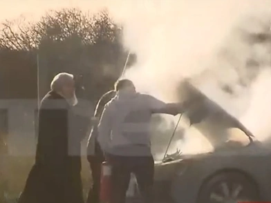 Όπως μεταδίδει το MEGA, ο ιερέας αντιλήφθηκε τη φωτιά λόγω του πυκνού καπνού που άρχισε να αναδίδεται κάτω από το αμάξωμα, σταματώντας στην άκρη του δρόμου για λόγους ασφαλείας.