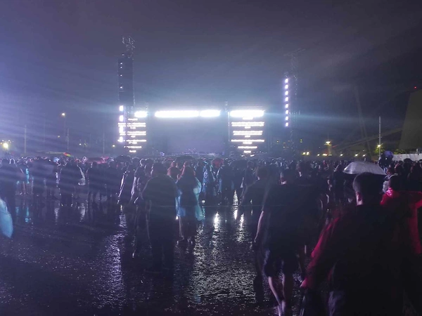 Οι είσοδοι έχουν ανοίξει στο ΟΑΚΑ. Σε βίντεο που έκαναν τον γύρο του διαδικτύου, φαίνονται οι παρευρισκόμενοι να κάθονται σε καρέκλες εν μέσω της δυνατής βροχής και να κρατούν ομπρέλες. Το συγκρότημα, παρά τα ακραία καιρικά φαινόμενα, δεν ακύρωσε ή ανάβαλλε την προγραμματισμένη του εμφάνιση.