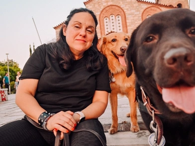 Οι σκύλοι-οδηγοί, κατά την ίδια, μπορούν να λύσουν πολλά από τα παραπάνω προβλήματα. «Θα σου μιλήσω αρχικά προσωπικά. Οι σκύλοι με βοήθησαν πολύ. Βελτίωσαν τη κινητικότητα του. Πια μπορώ να κινούμαι παντού με ασφάλεια, χωρίς να έχω ανάγκη κανέναν. Αλληλεπιδρώ μαζί τους. Μπορεί, δηλαδή, να βρίσκομαι σε ένα άσχημο σημείο της πόλης και αυτοί να μου δίνουν χαρά και αυτοπεποίθηση. Είναι η παρέα μου».