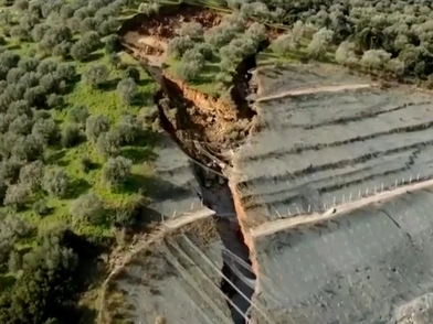 Σύμφωνα με την ΕΡΤ, γεωλόγοι και μηχανικοί της Ιόνιας Οδού, έφθασαν στο σημείο, πραγματοποιούν μετρήσεις και συνέλεξαν στοιχεία από το τεράστιο ρήγμα 200 μέτρων που έχει δημιουργηθεί , λόγω των έντονων βροχοπτώσεων το τελευταίο διάστημα.