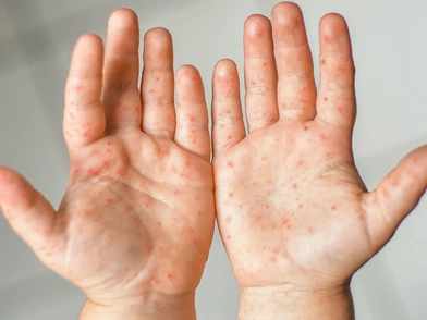 - Φυσαλίδες σε παλάμες, πέλματα, στόμα και γλουτούς (νόσος χειρών-ποδών-στόματος )