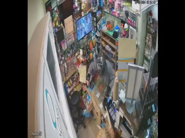 Στο βιντεοληπτικό υλικό φαίνεται ο δράστης να εισβάλει στο μίνι μάρκετ, έχοντας το κεφάλι του καλυμμένο με κράνος και κρατώντας στο χέρι την ματσέτα. Η γυναίκα ατρόμητη τον αποτρέπει με τη ματσέτα και ενεργοποιεί τον συναγερμό, αναγκάζοντας τον επίδοξο ληστή σε άτακτη υποχώρηση.