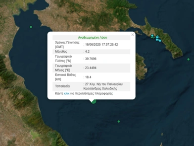 Ισχυρός σεισμός μεγέθους 4,2 Ρίχτερ σημειώθηκε νωρίτερα το βράδυ της Δευτέρας (16/6) στον θαλάσσιο χώρο ανοιχτά της Χαλκιδικής και έγινε αισθητός στη στεριά.