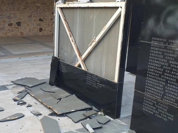 Στο σημείο οι φθορές είναι εμφανείς, με τις σπασμένες μαρμάρινες πλάκες να μαρτυρούν την επίθεση, ενώ η δημοτική αρχή έχει ήδη τοποθετήσει προστατευτικές κορδέλες γύρω από το μνημείο για να αποκλείσει την πρόσβαση στα κατεστραμμένα τμήματα.
