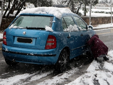 Ο χειμώνας δίνει το «παρών» με δριμύ ψύχος και χιόνια, που καθιστούν την κυκλοφορία των οχημάτων αδύνατη χωρίς τη χρήση αντιολισθητικών αλυσίδων.