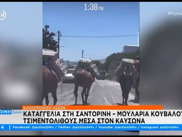 Ένα σοκαριστικό περιστατικό κακοποίησης ζώων σημειώθηκε στη Σαντορίνη, όπου σε βίντεο που ήρθαν στο φως της δημοσιότητας, φαίνονται μουλάρια να κουβαλούν τσιμεντόλιθους στις πλάτες τους μέσα στον καύσωνα.