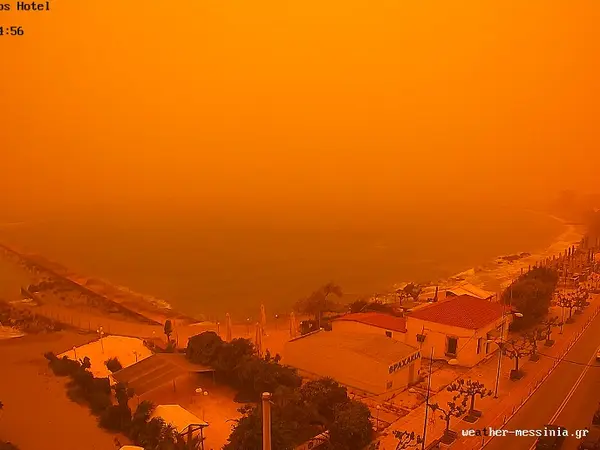 Σκηνικό από την έρημο Σαχάρα θυμίζει η Καλαμάτα, η οποία έχει κατακλειστεί από την αφρικανική σκόνη.