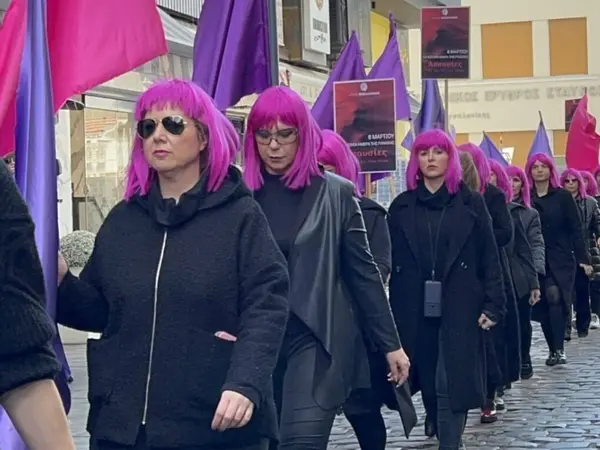 Μία ιδιαίτερη δράση στους δρόμους της Θεσσαλονίκης, όπου εμφανίστηκαν περίπου 25 γυναίκες, φορώντας μωβ περούκες, ώστε να στείλουν το δικό τους μήνυμα για την Παγκόσμια Ημέρα της Γυναίκας.