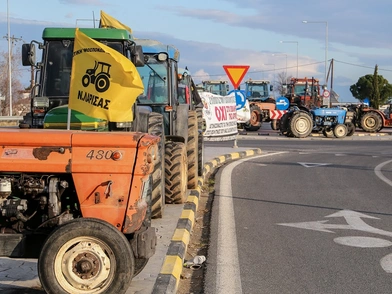 Αγρότες από όλη τη Θεσσαλία με τρακτέρ και άλλα αγροτικά μηχανήματα βρίσκονται στον κόμβο Ε65 στην Καρδίτσα ανταποκρινόμενοι στο κάλεσμα των Ομοσπονδιών Αγροτικών Συλλόγων Θεσσαλίας για πανθεσσαλικό μπλόκο.
