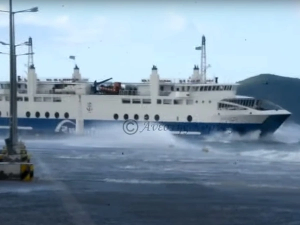 Βίντεο του χρήστη Ανέστη Κορνέζου που δημοσίευσε το Piraeus Press, δείχνει τη «μάχη» με τα κύματα που έδωσε το πλοίο «Αχαιός» - για πάνω από μια ώρα - προκειμένου να δέσει στο λιμάνι της Αίγινας.