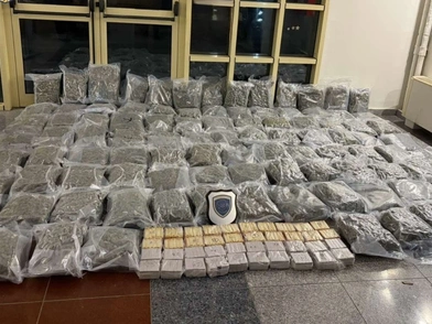 Με τη συνδρομή των ειδικά εκπαιδευμένων σκύλων ανίχνευσης κατασχέθηκαν 100 αεροστεγώς κλειστές συσκευασίες ακατέργαστης υδροπονικής κάνναβης (skunk), συνολικού μικτού βάρους 110,7 κιλών, καθώς και 40 συσκευασίες κατεργασμένης κάνναβης (hashish), βάρους 21,17 κιλών.