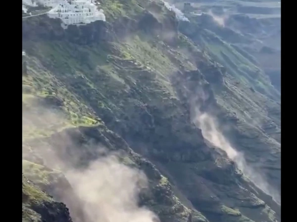 Νωρίτερα εστάλη μήνυμα από το 112 στους κατοίκους και τους επισκέπτες της Σαντορίνης για τον «κίνδυνο κατολισθητικών φαινομένων».