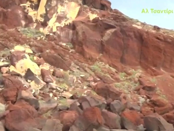 Μάλιστα, αυτό φαίνεται δια γυμνού οφθαλμού καθώς υπάρχουν λευκά σημεία πλέον δίπλα στα κόκκινα βράχια, αφού πρόκειται για τμήματα που έπεσαν στη θάλασσα και στην παραλία μετά τους σεισμούς.
