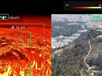 Drone με θερμική κάμερα πέταξε πάνω από την Αθήνα για να καταγράψει τις υψηλές θερμοκρασίες στην κορύφωση του καύσωνα.