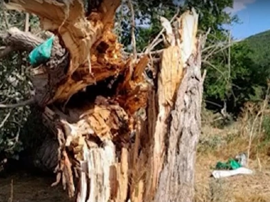 Το τραγικό σκηνικό της επόμενης μέρας κατέγραψε η Πρωινή Ζώνη του Action 24, με πλάνα που δείχνουν πως ο κεραυνός έκοψε το δέντρο στα δύο, με τόση δύναμη, ώστε δεν πρόλαβε καν να κάψει τον κορμό, σχίζοντάς τον.