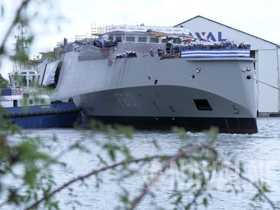 Η ιστοσελίδα Naval News έφερε στη δημοσιότητα το βίντεο με τη φρεγάτα να είναι ντυμένη στα γαλανόλευκα και να ετοιμάζεται για την επίσημη καθέλκυση.