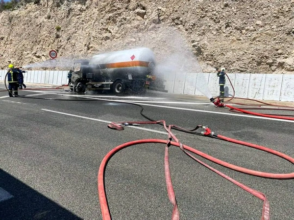 Συναγερμός σήμανε το μεσημέρι της Πέμπτης στην Εθνική Οδό Αθηνών - Κορίνθου μετά από φωτιά που ξέσπασε σε βυτιοφόρο που μετέφερε 7,2 τόνους υγραερίου κίνησης.