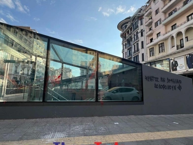 Επίσης και ο σταθμός «Δημοκρατίας» έπεσε θύμα βανδαλισμών, καθώς έγραψαν συνθήματα στους τοίχους του εξωτερικά.