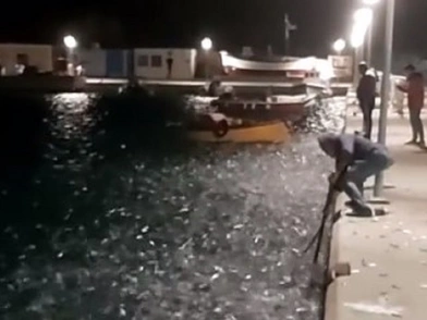Οι ψαράδες έσπευσαν να μαζέψουν όσες περισσότερες σαρδέλες μπορούσαν.
