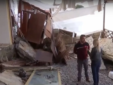 Στο χωριό Καμάρι περισσότερα από 100 σπίτια αντιμετωπίζουν προβλήματα από τη σοβαρή διάβρωση. «Τα πρώτα σημάδια είχαν φανεί αρκετό καιρό πριν», ανέφερε μιλώντας στην κάμερα του ALPHA ιδιοκτήτης της επιχείρησης. «Αυτό που βλέπετε έγινε μέσα σε δευτερόλεπτα», συμπλήρωσε.