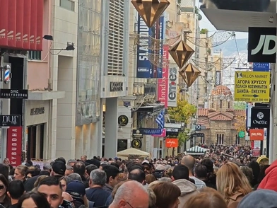 Όπως φαίνεται σε πλάνα του Orange Press Agency, οι εμπορικοί δρόμοι στο κέντρο της Αθήνας και φυσικά η Ερμού έχουν γεμίσει ασφυκτικά με κόσμο.