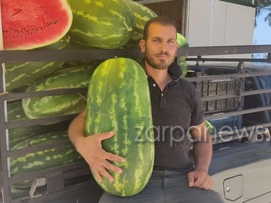 Εντυπωσιάζει το μέγεθος του καρπουζιού–γίγας, που «μεγάλωσε» ο Παρασκευάς Χανταμπής, παραγωγός από τα Χανιά, στην Κρήτη, καθώς ζυγίζει περίπου 28 κιλά και πλησιάζει σε μήκος τα 60 εκατοστά.