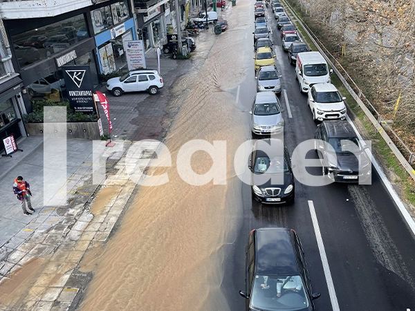 Γέμισε νερά η λεωφόρος Μεσογείων από σπασμένο αγωγό της ΕΥΔΑΠ στο ύψος της οδού Πτολεμαίων στην Αγία Παρασκευή.
