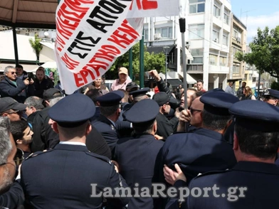 Όπως μεταδίδει το lamiareport.gr, μέλη του Εργατικού Κέντρου Λαμίας και του Σωματείου Εργαζομένων της ΛΑΡΚΟ προσπάθησαν να περάσουν με πανό μπροστά από την εξέδρα των επισήμων και να μοιράσουν στον κόσμο τα αιτήματά τους.